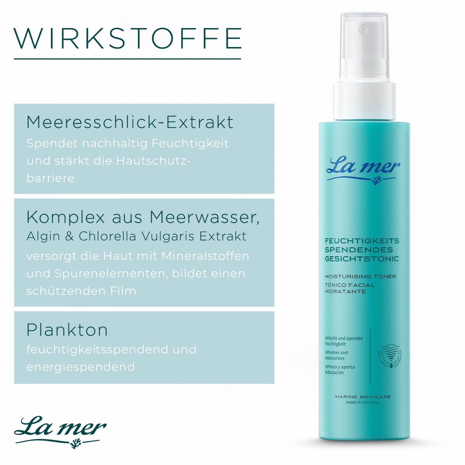 La mer ist eine deutsche Hautpflegemarke mit über 40 Jahren Tradition, die besonders verträgliche, exklusive Pflegeprodukte „Made in Germany“ entwickelt. Die Formulierungen basieren auf dem mineral‑ und sauerstoffreichen Meeresschlick‑Extrakt aus dem Wattenmeer, ergänzt durch hochwertige natürliche Wirkstoffe und dermatologisch getestete Rezepturen. La mer legt großen Wert auf Nachhaltigkeit, Umwelt‑ und Ressourcenschutz, produziert am Standort Cuxhaven und verfolgt eine saubere, umweltbewusste Kosmetikphilosophie.
